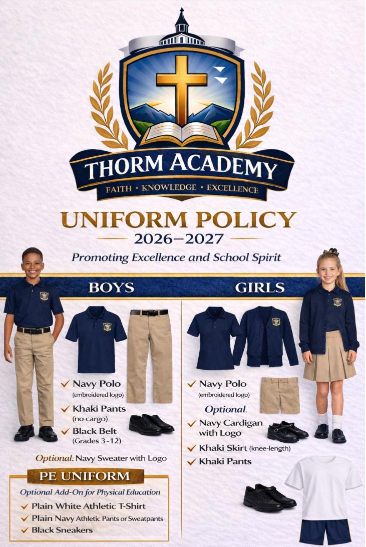 Thorm Academy exists to provide a Christ-centered K–12 education that cultivates faith, academic excellence, and strong character. We are committed to developing well-rounded students who think critically, lead with integrity, and are equipped to fulfill their God-given purpose in life and make a meaningful impact in their communities and beyond.